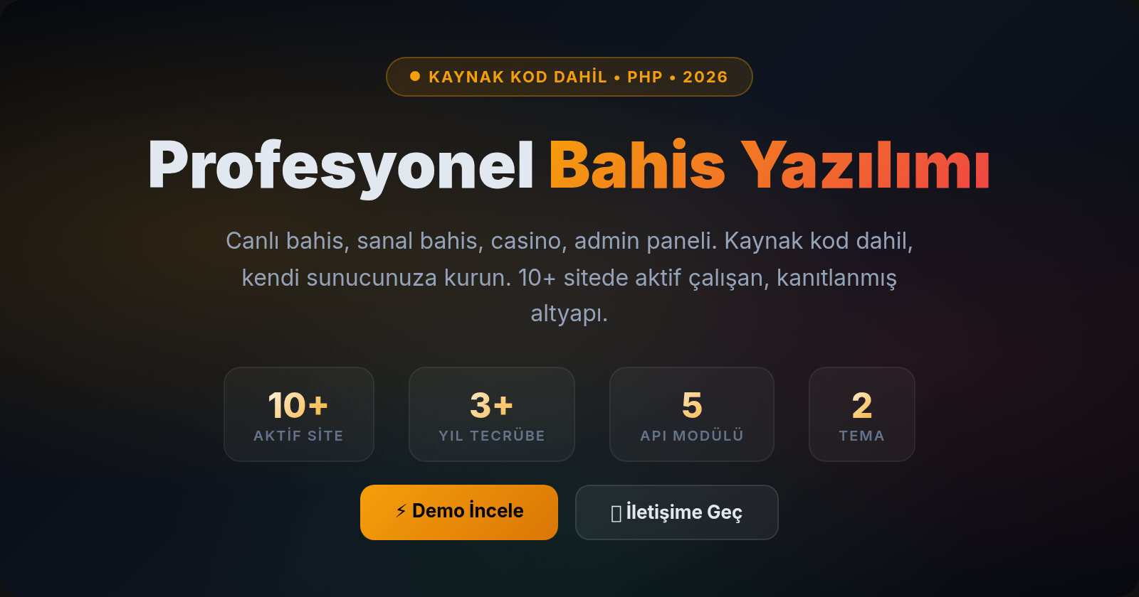 Piyasadaki sorunlu, sürekli hata veren ve geleceği olmayan scriptlere para harcamaktan yoruldunuz mu? İşte size gerçek bir iş kurma fırsatı! Zoretech olarak, 10+ yıllık kesintisiz tecrübemiz ve 10'dan fazla aktif referans sitemizle, kanıtlanmış, stabil ve kâr odaklı bahis yazılımımızı TÜM KAYNAK KODLARIYLA BİRLİKTE satışa sunuyoruz!